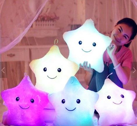 Twinkle Star Shaped Plush Pillow, Creative LED Night Light Glow Cushions, Pink